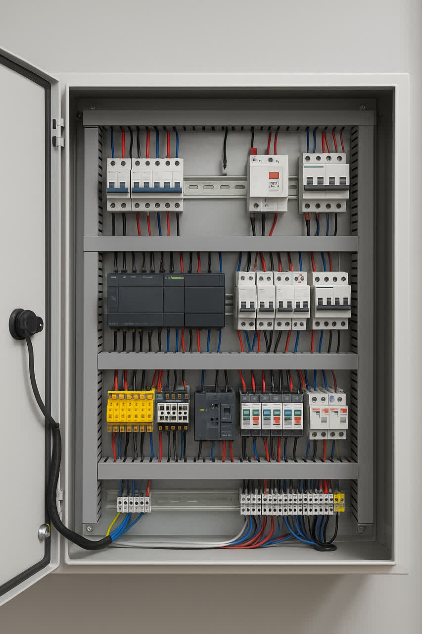 • سیستمهای حفاظتی: استفاده از کلیدهای مینیاتوری، فیوزها و رلههای حرارتی برای حفاظت.