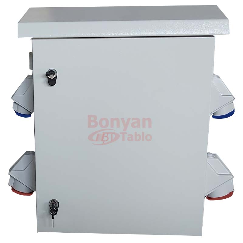 بدنهی این تابلوها معمولاً از ورق فولادی ضخیم یا استیل ضدزنگ ساخته میشود و روی آنها با رنگ پودری الکترواستاتیک پوشیده میشود تا در برابر خوردگی و زنگزدگی مقاوم باشند. یکی از مهمترین ویژگیهای این تابلوها وجود درزگیر و نوار آببندی در اطراف دربها و دریچههاست که مانع ورود قطرات آب میشود.